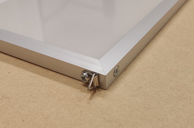 出力業者様必見 アルミフレーム部品付 ■ アルミフレームでワンランクアップのディスプレイ ■ 7mmのり付ボードにポスター貼りしたPOPにアルミフレームで組み立て部材 ■ 店舗用ディスプレイ用品